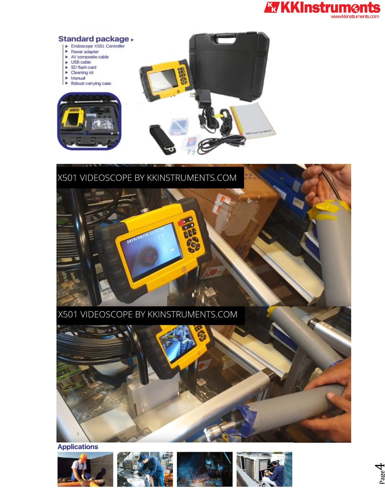 Snapshot, Video recording, Audio recording, Picture & video review on LCD screen, TV out, transfer of picture & video from SD card to PC, Digital Zoom, Recording, Wireless Inspection System.