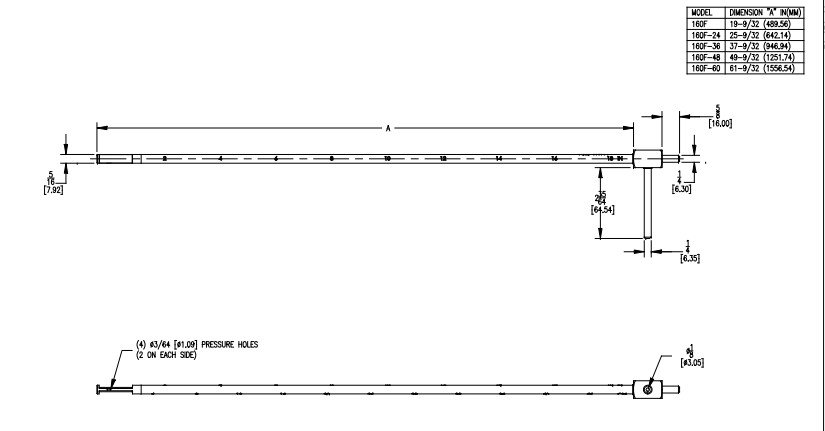 | DWY011-160F-36 | Straight stainless steel pitot tube, 36" 100cm |