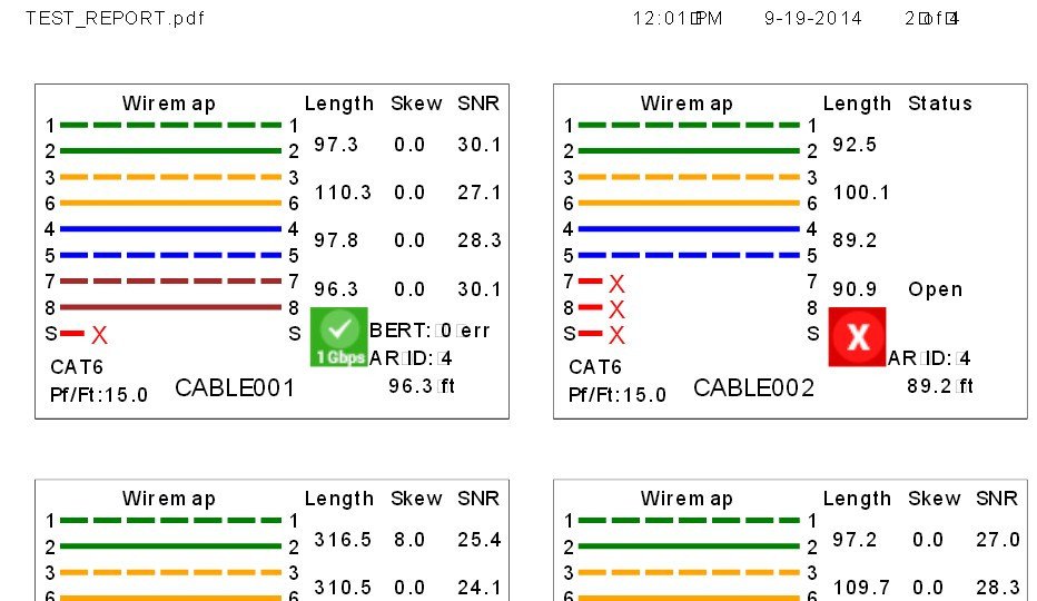 - Improperly terminated cables are clearly displayed on a color graphical wire-mapping display